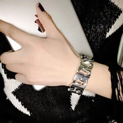 This Hectoria Cuff Bracelet is an eye-catching addition to any ensemble. Features a large link cuff design perfect for making a remarkable statement. Comes in two colors for the perfect accent piece for any outfit.