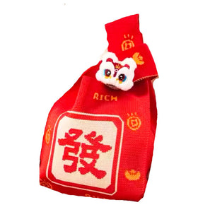 Elevate your fashion game with this exquisitely crafted Japanese style knot bags, showcasing vibrant Chinese New Year colours and designs. The addition of a cute plush lucky lion completes the look, making it a must-have accessory for any occasion.