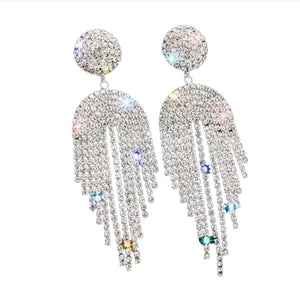 Rhinestones Chandelier and Tassel Earrings