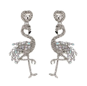 Introducing Rhinestones Flamingo Earrings, the optimal addition to any wardrobe. Made with lustrous rhinestone crystal accents, these earrings boast a chic flamingo silhouette. Enhance your style with this dazzling pair of accessories.